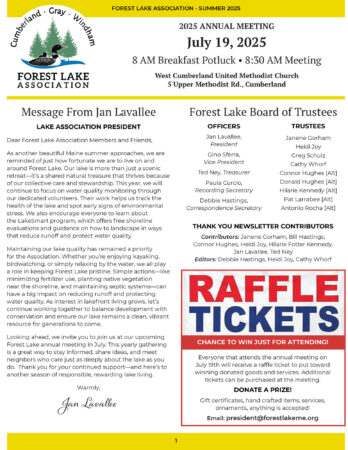 The 2025 Edition of the Forest Lake Newsletter was mailed on 6/12/25. Your copy should reach your mailbox soon!